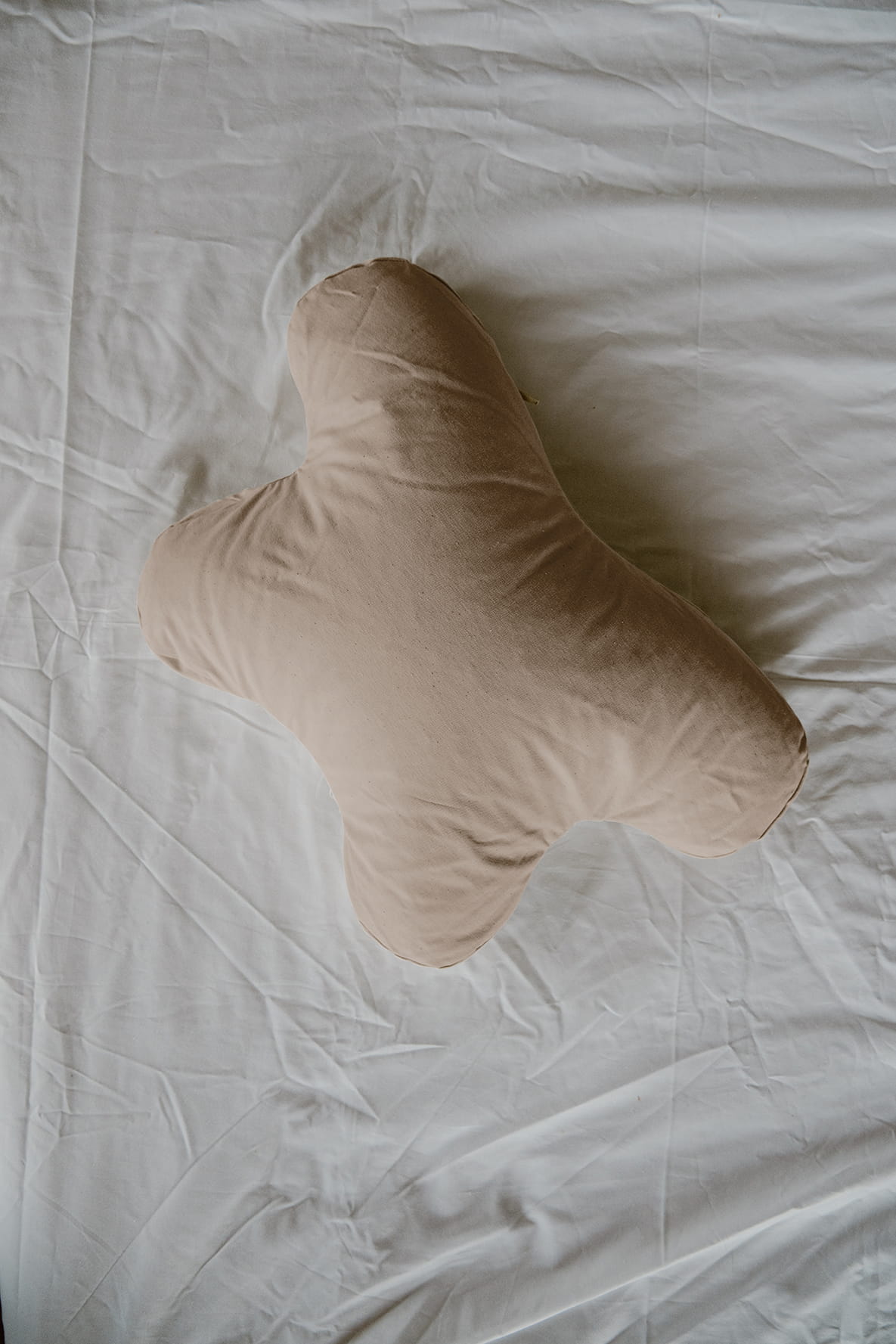 - Ergonomiczny, konturowy kształt podpiera głowę i szyję, rozkładając równomiernie wagę i zapobiegając gnieceniu oraz fałdowaniu delikatnej skóry twarzy, co jest główną przyczyną tzw. „zmarszczek sennych”.