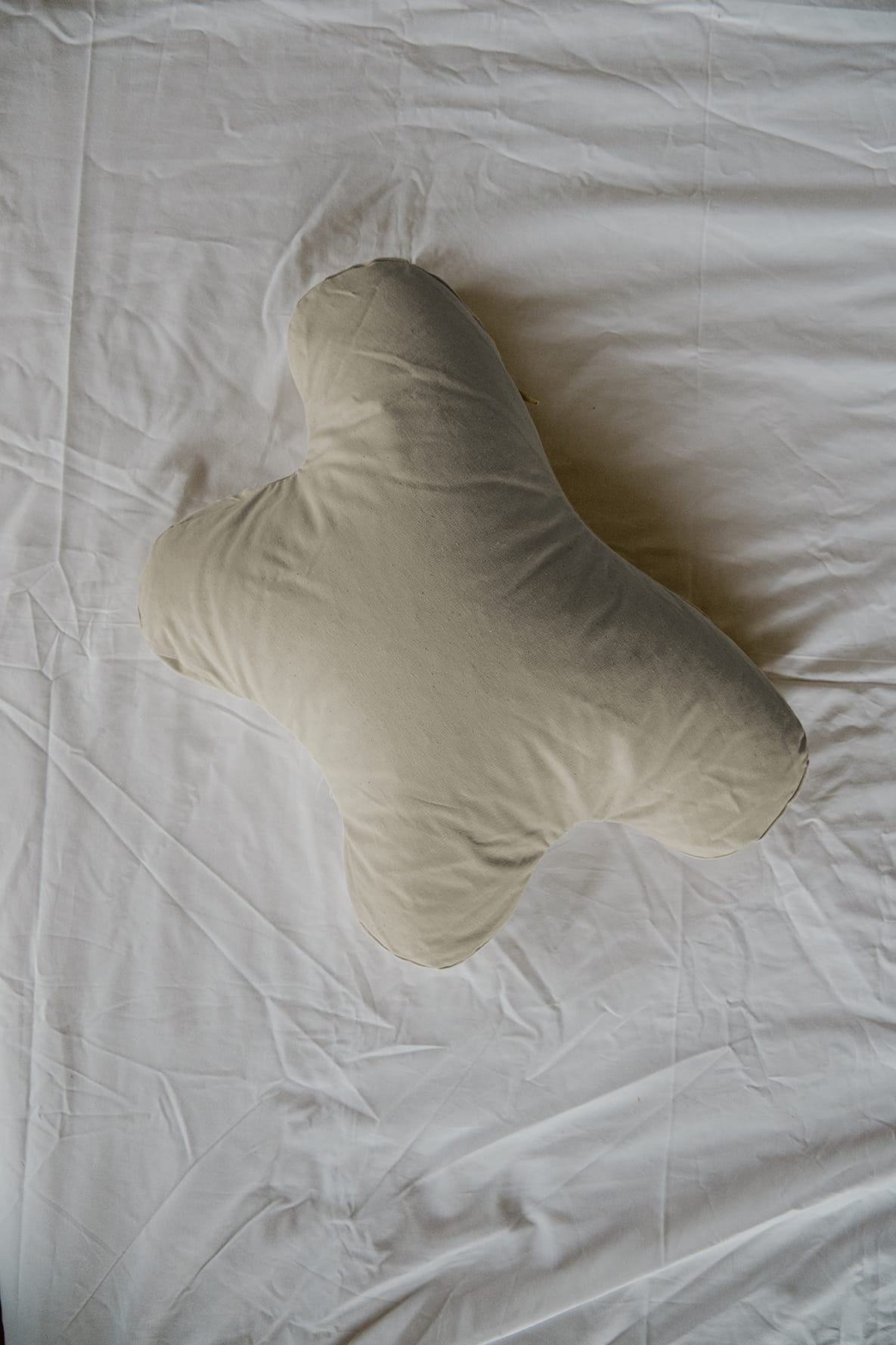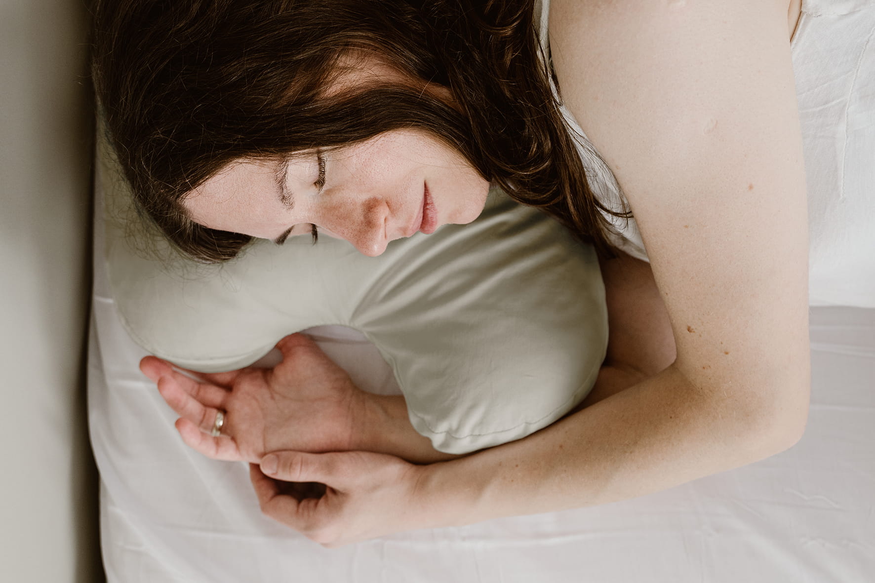 - Ergonomiczny, konturowy kształt podpiera głowę i szyję, rozkładając równomiernie wagę i zapobiegając gnieceniu oraz fałdowaniu delikatnej skóry twarzy, co jest główną przyczyną tzw. „zmarszczek sennych”.