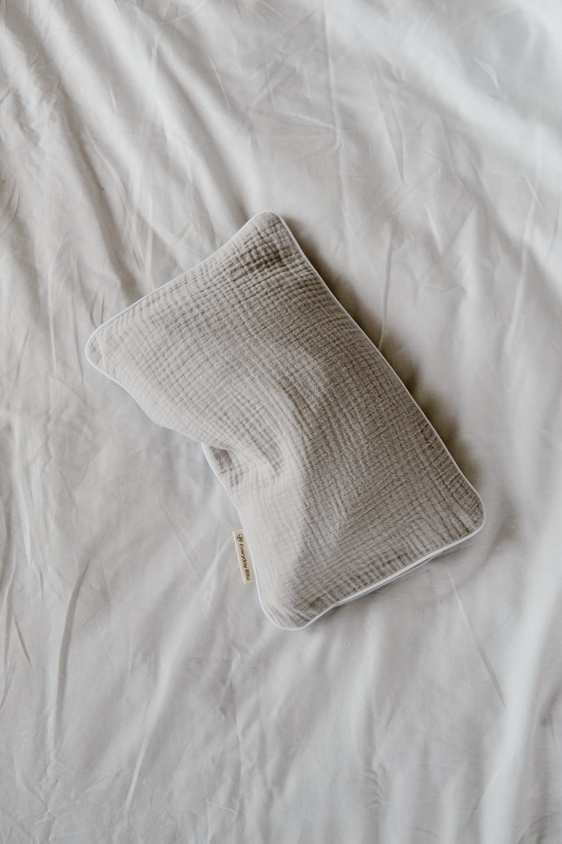 Poszewka na termoforek uszyta została z delikatnej, oddychającej muślinowej bawełny (100%, Oeko-Tex Standard 100), utrzymanej w stonowanym, naturalnym odcieniu szarości*